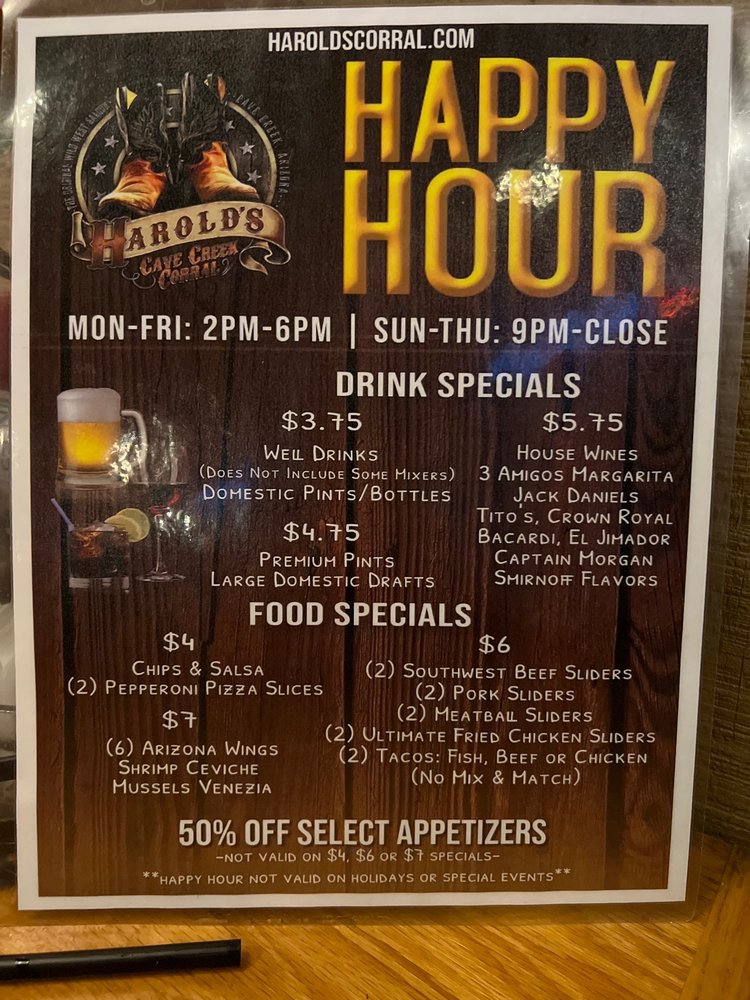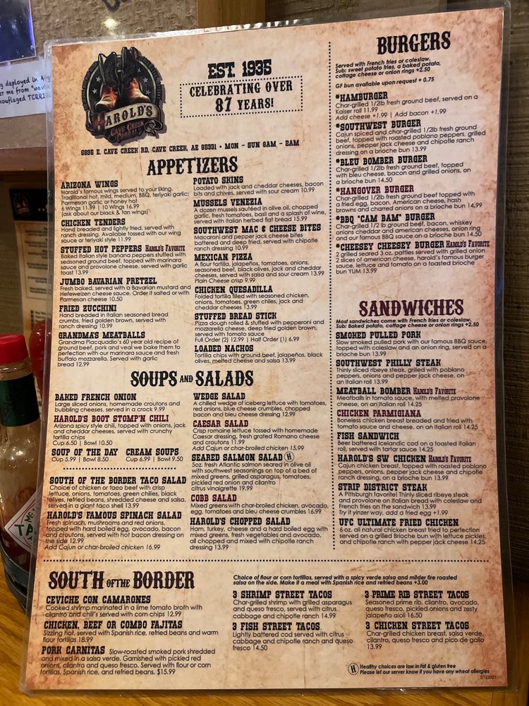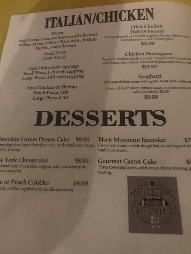 Harold's Corral, located in Cave Creek, AZ, is a unique blend of Dance Club and Steakhouse, offering a diverse American menu. This establishment goes above and beyond to cater to all needs, from wheelchair accessibility to vegetarian options and even cryptocurrency payments. The reviews from patrons such as Lea, Natalie, John, Bryan, and Nicholas only further validate the fantastic experience to be had at Harold's. The food is consistently praised, with standout dishes like the chicken fried steak and burgers receiving high praise. The atmosphere is lively, with live music and a country western vibe that adds to the overall experience. Whether you're looking for a night of dancing, a family-friendly meal, or simply a great meal with top-notch service, Harold's Corral is a must-visit destination.